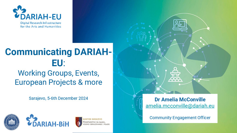 Amelia McConville, “Communicating DARIAH EU: Working Groups, Events, European Projects & more,” DARIAH-BiH, accessed September 30, 2025, https://dariahbih.unsa.ba/items/show/4.