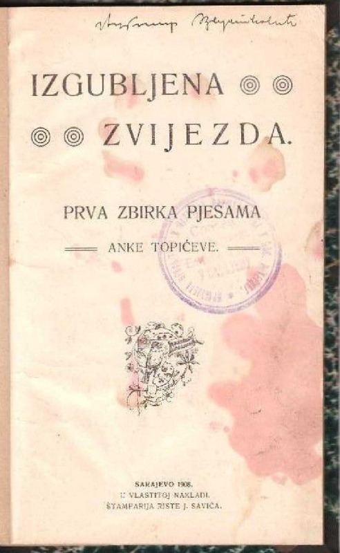 Anka Topić, “Izgubljena zvijezda : prva zbirka pjesama Anke Topićeve,” DARIAH-BiH, accessed September 30, 2025, https://dariahbih.unsa.ba/items/show/42.