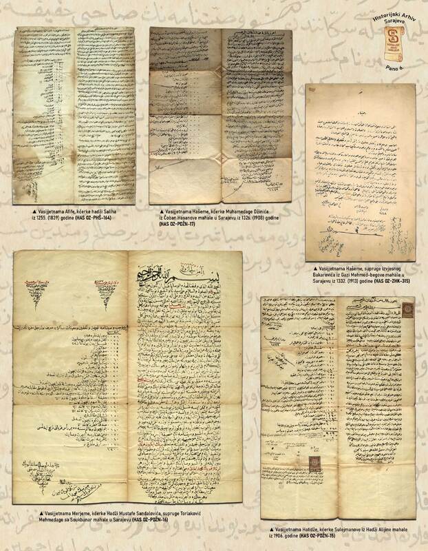 Na drugom panou izložbe "Femme Archival - Ženski glas iz Arhiva" predstavljena je selekcija dokumenata iz Zbirki i fondova na orijentalnim jezicima - Vasijetname u kojima se javljaju žene kao oporučitelji (vasijetname Afife, Hašeme, Merjeme, Hatidže).
